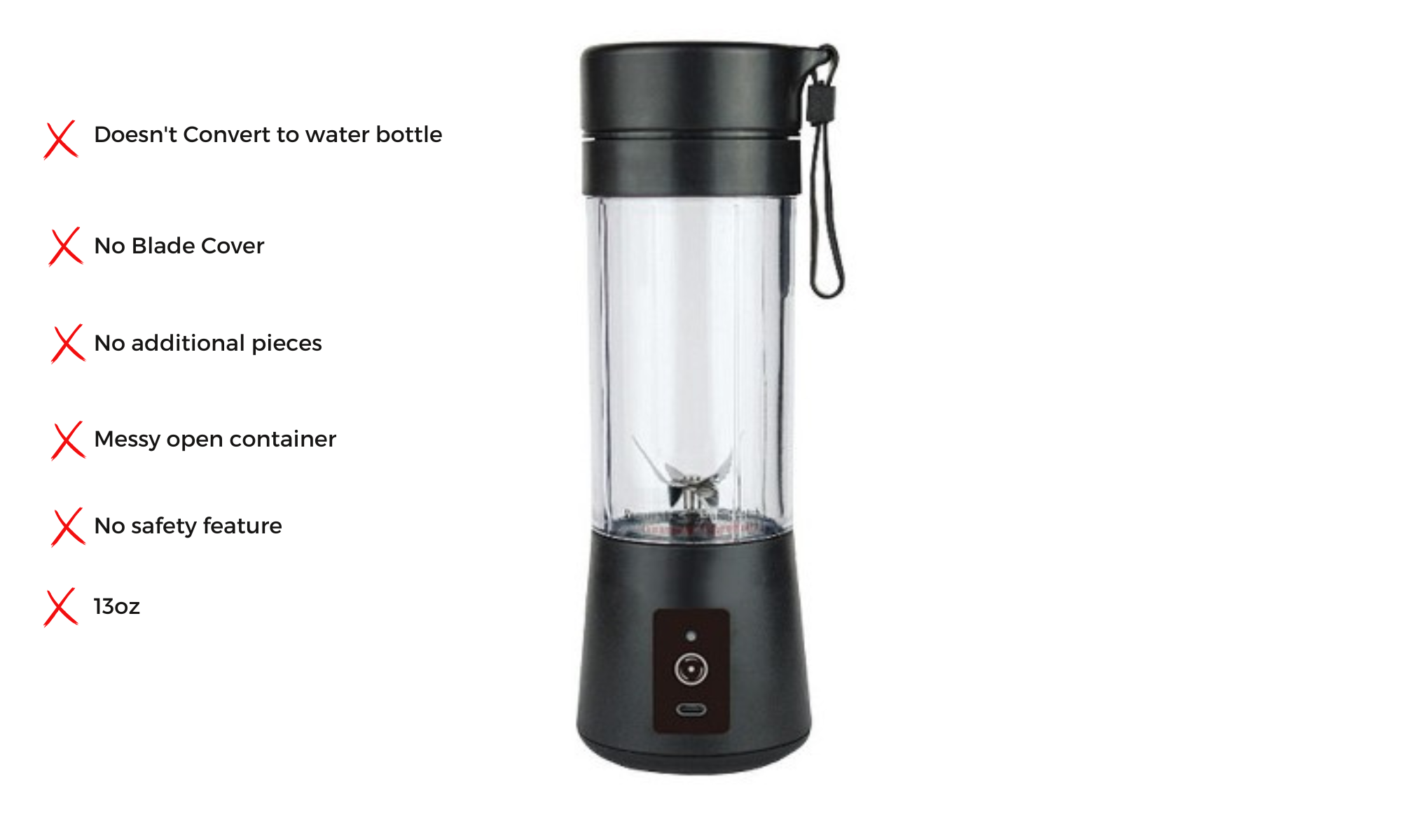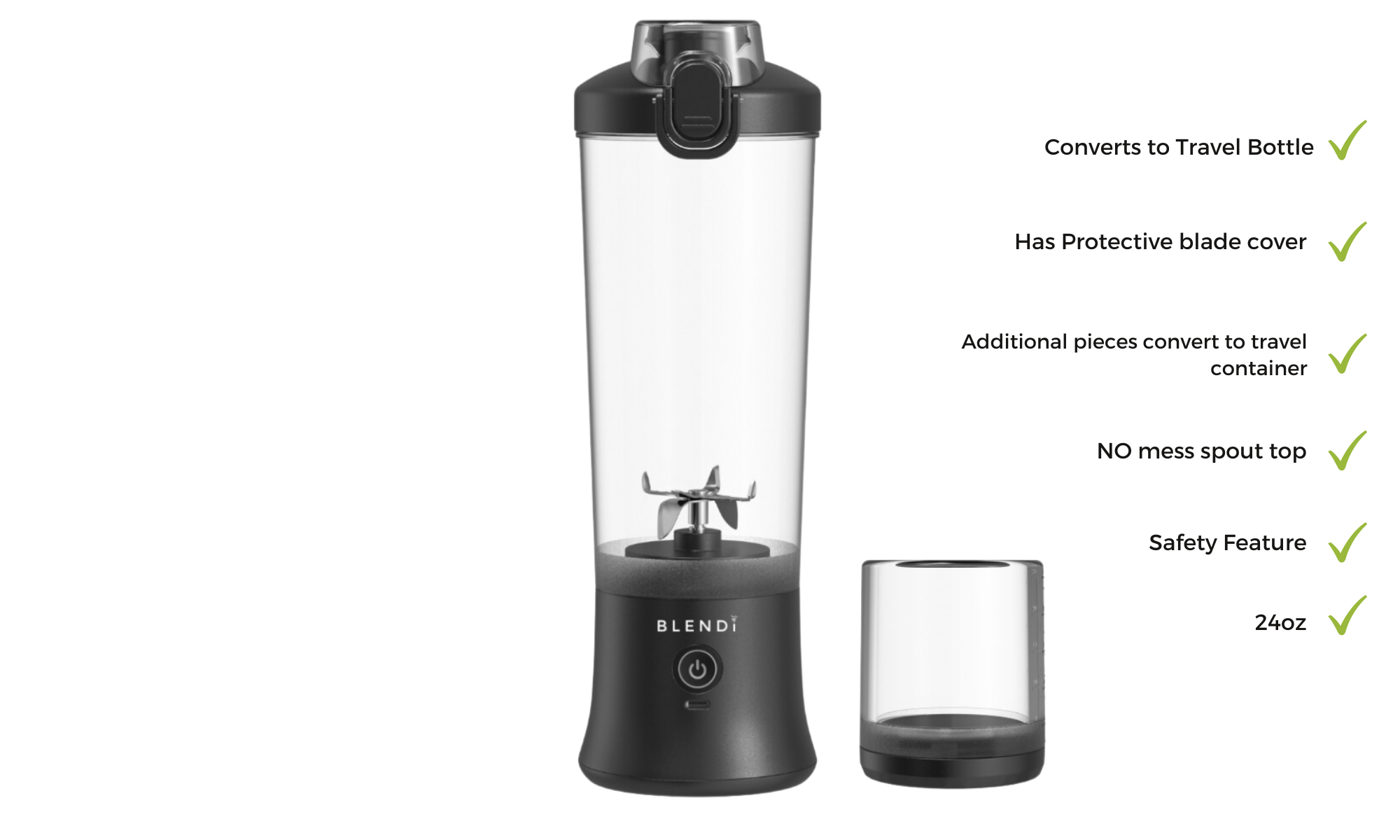 This blender is excellent! It is great for mixing my protein shakes and the large 24-ounce capacity, and strong blades blend anything I want to mix. The lights at the base tell me when I need to recharge. I love it! Highly recommend!