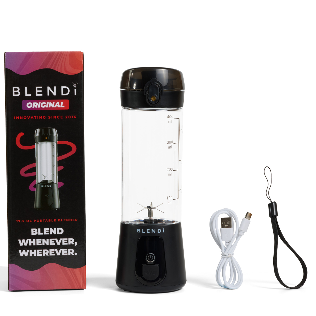Your BLENDi Lite comes complete with everything you need: 70W Blending Base with rechargeable battery, BPA-Free ML Cup (14 oz), No-Mess Spout Top, 6 Stainless Steel Blades, and USB-C Charging Cable.